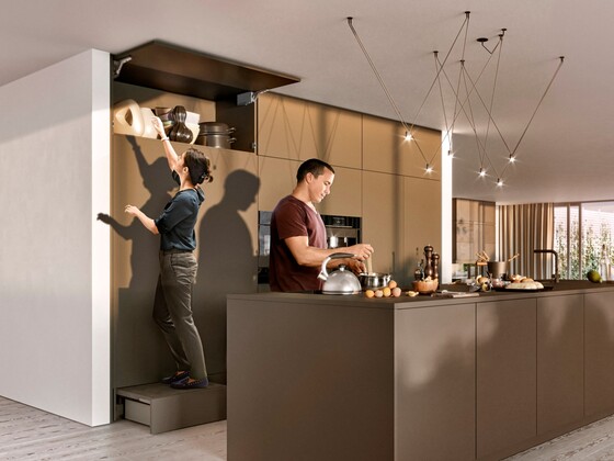 Thanks to motion technologies by Blum, SPACE STEP opens and closes with ultimate ease. Combine SPACE STEP with TIP-ON BLUMOTION or SERVO-DRIVE for a touch-to-open experience. The step closes softly and effortlessly with soft-close BLUMOTION.
