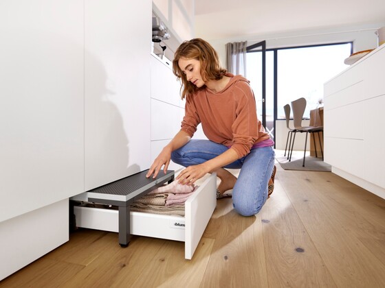 Create extra storage space behind toe kicks, provide easy access to wall cabinets and let children lend a helping hand - SPACE STEP brings multifunctionality to cabinet bases.