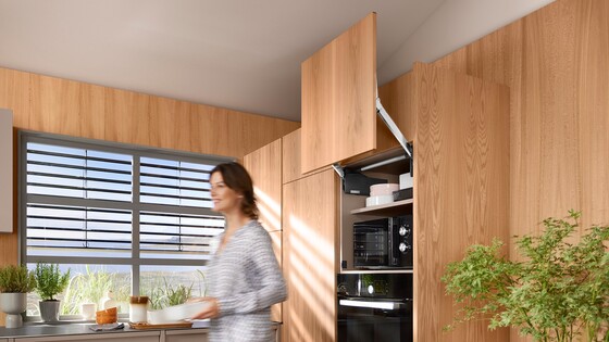 Looking for soft and effortless closing? The integrated BLUMOTION soft-close mechanism is the answer. You can also combine the lift system with the SERVO-DRIVE electrical motion support system – for the entire kitchen or individual cabinets.