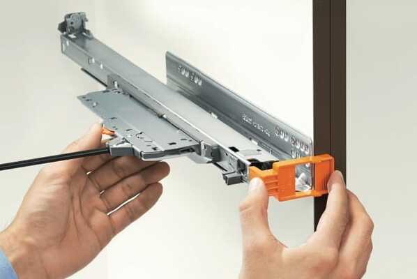 TIP-ON BLUMOTION can be added to MOVENTO drawers without modifying the cabinet or drawer fronts.